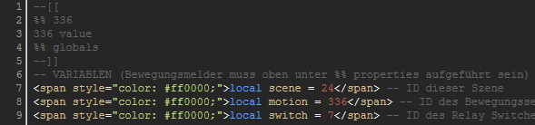 -- VARIABLEN Konfiguration (Bewegungsmelder muss oben unter %% properties aufgeführt sein) löst die szene aus