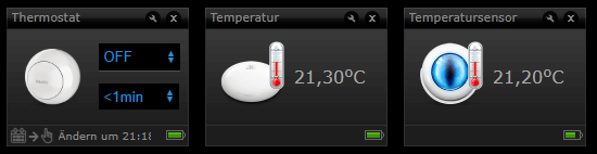Das Thermometer dass keinen Wert anzeigt, wäre der abgesetzte Temperatursensor, der beim Starterkit dabei ist. Den kann man aber auch separat nachbestellen wenn man ihn braucht. Kannst für den Raum auch einen anderen Sensor definieren.