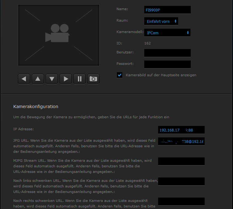 IP Addresse, Usernamen und Passwort eingetragen und den Link bei JPEG eingesetzt.