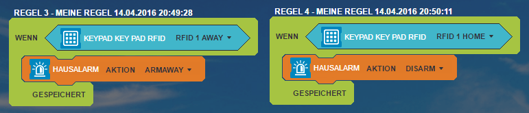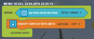 Beim erstellen der Regel mit dem Keypad standen mir die Attribute erst nicht zur Verfügung. Erst nach einigen Minuten und zwei Synchronisationen standen plötzlich die Attribute „RFID away, RFID home“ zur Auswahl.