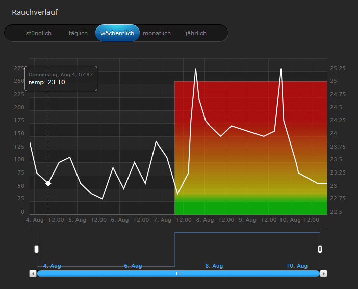 diese Mal ist der Rauchmelder im Zimmer von unserem Kleinen losgegangen. Ich saß gerade mit dem gut zwei Monate alten Zwerg nach dem Fläschchen auf dem Sofa bei abgedunkelter Beleuchtung in seinem Zimmer im DG, als der Rauchmelder losging. Der Druck auf den Knopf konnte ihn dann auch fix wieder abschalten.