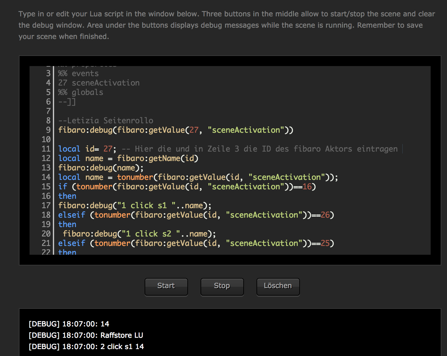 tonumber(fibaro:getValue(27, "sceneActivation")) == 25 -- 27 = Raffstore Essen Links Unten, Signal 25 ist Dreifach-Klick runter (S2)
