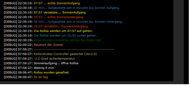 debug('steelblue',"Die Rollos werden um "..zeitMaxUntergang.. " unter gehen.")