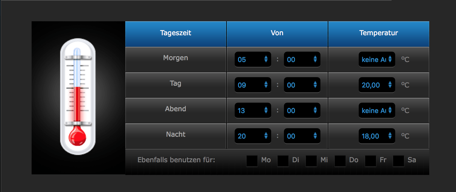 Die Heizpläne aller Räume werden manuell auf den Heizplan