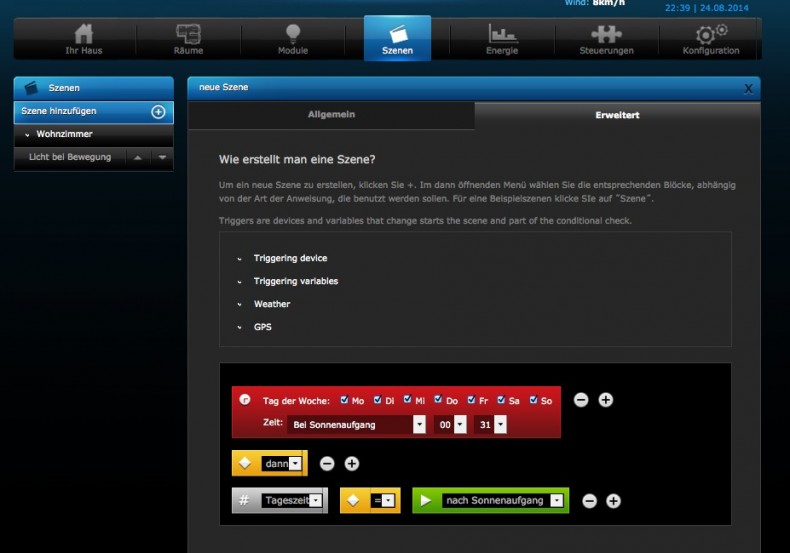 zu 2. wo und wie mache ich das? Ich kenne nur die „Default-Einstellungen“ bei diesem finde ich aber nichts was auf eine Zeit-Szene hindeutet ausser eben wie in meinem PrintScreen gewählt „Timer / Tage der Woche“