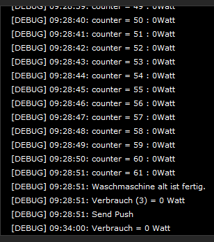 Ups. Der Trockner genehmigt sich doch noch etwas mehr Saft im Nachlauf. Konnte im Debug eben sehen, dass der Spitzenwert bei 201 Watt lag. Es waren weitere Werte knapp drunter dabei - also höher als meine aktuell eingetragenen 170. Werde dann heute Abend den Code nochmal anpassen. Danke!