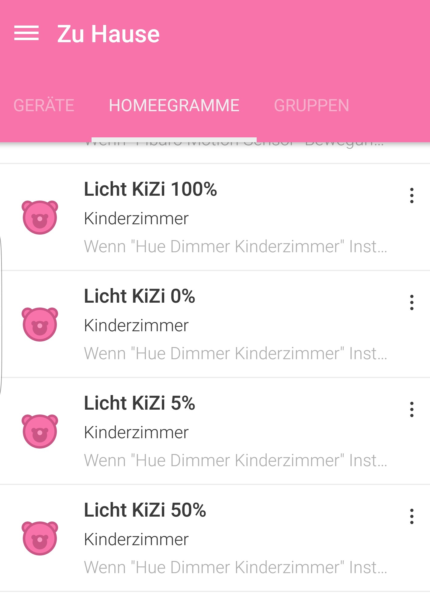 ist es… Wie üblich. Wie gesagt der Vorteil ist das man jede Taste mit einem Homeegramm belegen kann. In der normalen Hue Umgebung kann man nur eine Szene drauf legen kann und diese nur dimmen. Also im homee ein Vielfaches an Funktionen.